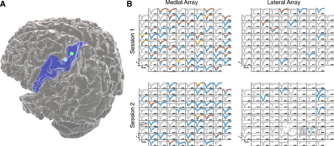 在训练时,脑机接口可以实时解码并记录他大脑运动皮层的神经活动。