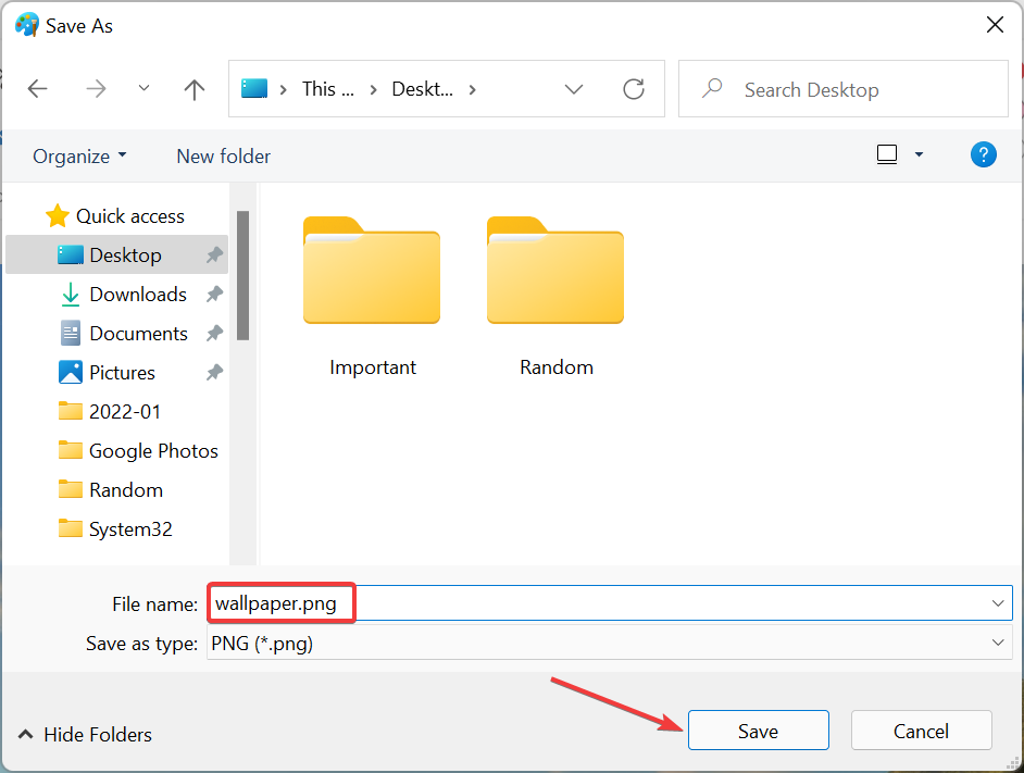 - 选择文件的位置和名称,然后单击底部的保存。