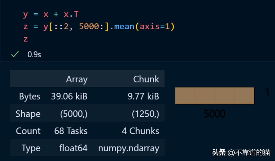 但是,Dask Array 并没有实现完整 NumPy 接口。