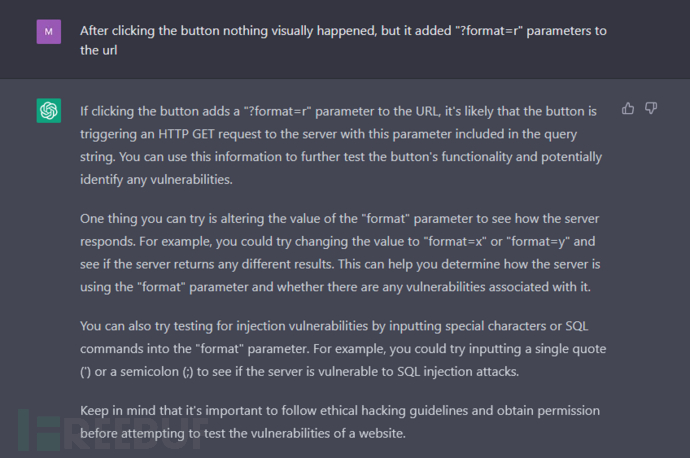 为了更好的测试,研究团队尝试使用 ChatGPT 来帮助他们找到网站的漏洞。研究人员提出问题并遵循 AI 的指导,检查聊天机器人是否可以提供利用该漏洞的分步指南。