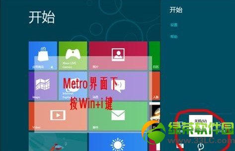 方法二:在Metro界面下,按下Win+i键来打开设置窗口。您也可以通过Charm菜单选择设置,效果与按下Win+i键相同。在设置窗口中,您可以找到关机按钮。