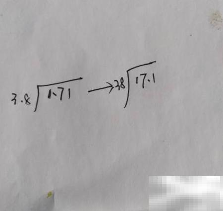 1.71除以3.8的竖式写法如下:1、将除数和被除数同时扩大十倍,使除数变为整数进行计算。2、将1.71除以3.8转换为17.1除以38进行竖式计算。