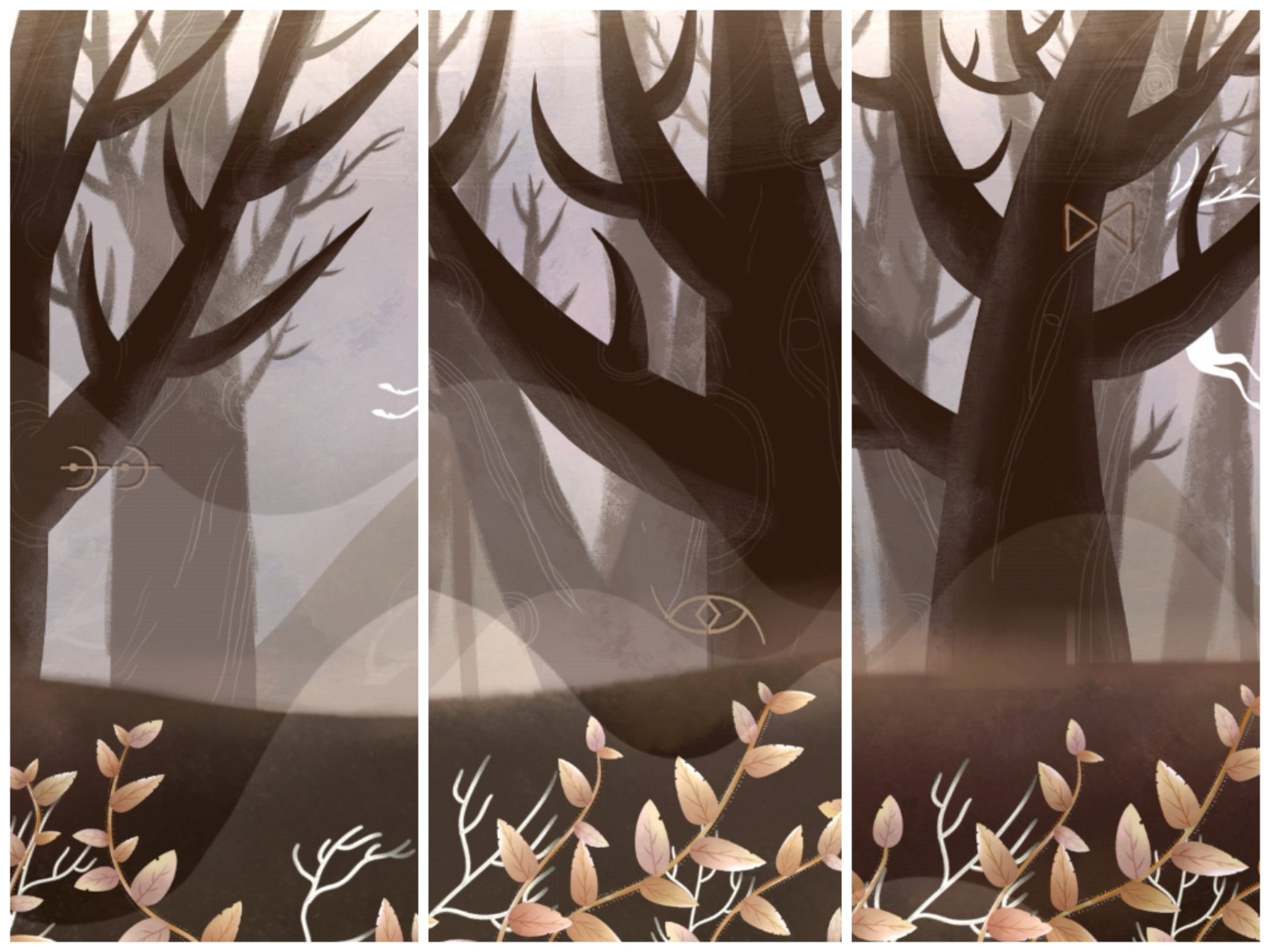 《深林》秋季章节图文攻略:一、秋季1、观察树上显示的组合图案(1.1),点击出现的长角雄鹿白影。注意:只能点击雄鹿,若误点雌鹿,计数将被重置1.12、当黑影浮现后,依据之前看到的图案组合,选择并点击正确的图案,随后会触发“怕火的家伙”这段对话3、留意地面上石头的花纹样式(1.2),进入最左边的花树界面,按照花纹顺序依次点击对应数量的花球(1.3)1.21.34、滑动画面至最右侧,点击树下的小精灵获得一根骨头,再点击熄灭的火堆,拾取另一根骨头5、向左滑动场景,点击正在奔跑的小精灵,取得蓝色的火焰6、点击湖中