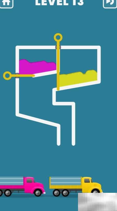 如何轻松通关ClickClickRescue第13关?熟练运用操作逻辑、精准把握时机、保持快速应变能力是核心要点。1、本关设有两根拉针,分别对应黄色与粉色两种液体,整体结构布局如下图所示。2、首先点击黄色液体左侧的竖直拉杆,按图中指示顺序执行操作。3、接着点击粉色液体正下方的水平拉针,操作方式见下图示意。4、待两种液体均顺利导出后,界面将显示“LEVELCOMPLETED”通关提示,如图所示,即代表成功过关。394 收藏 -