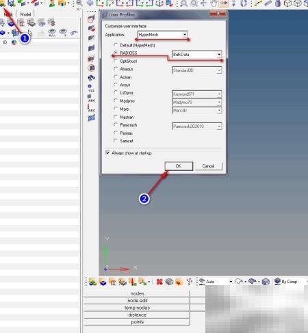 教你熟练运用HyperMesh实现强制位移加载的关键步骤与实用技巧。1、启动HyperMesh软件后,在用户界面配置窗口中,依次勾选HyperMesh、RADIOSS以及BulkData三个模块选项,确认无误后点击“确定”,关闭配置对话框,进入主操作界面。2、在标准工具栏的集成面板中,点击“打开模型”按钮,随后在系统弹出的文件选择窗口中,定位并选中已准备好的板状结构模型文件。你也可以临时创建一个20×100单位的矩形几何体,并完成网格划分,设定单元尺寸为5单位,最后点击“打开”完成模型导入。3、进入