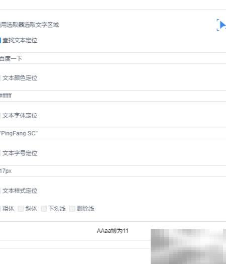 小帮软件机器人高级文本定位器能够基于控件的文本内容、字体颜色、字体名称、字号大小以及文本样式等多维度属性实现高精度识别与定位。用户可根据实际需求,灵活组合并自定义任意一项或多项属性作为匹配条件,但须至少指定一项文本相关特征,以确保识别与定位的有效性。1、使用选择器点击并选定目标控件2、系统自动触发文本定位器配置界面,支持依据所选控件的文本属性进行条件设定,涵盖文本内容、颜色、字体、字号及样式五大维度;其中任一属性均可独立配置,且必须至少启用一项方可完成有效定位。3、设置页面