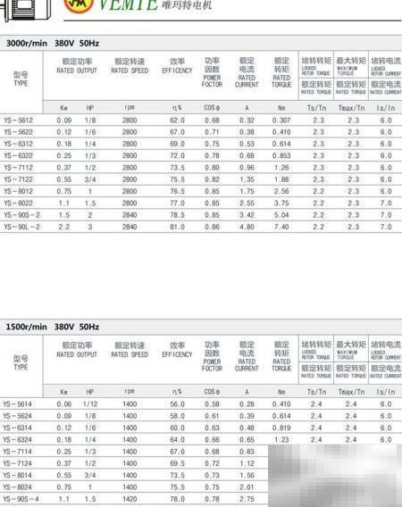 三相异步电动机的功率、转速等相关技术参数均已清晰标示在对应图纸中。1、YS系列三相异步电动机功率参数图2、YS系列三相异步电动机功率性能参数图3、YE2系列三相异步电动机功率参数图4、YE2型三相异步电动机功率规格参数图5、YE3系列三相异步电动机功率参数图6、YE3型三相异步电动机功率技术参数图7、三相异步电动机能效等级对照表