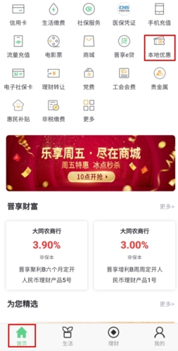 晋享生活如何获取优惠券?1、打开首页后,点击“本地优惠”入口,2、跳转至本地优惠页面后,浏览并选择心仪的商家;3、进入商家详情页,即可免费领取优惠券。