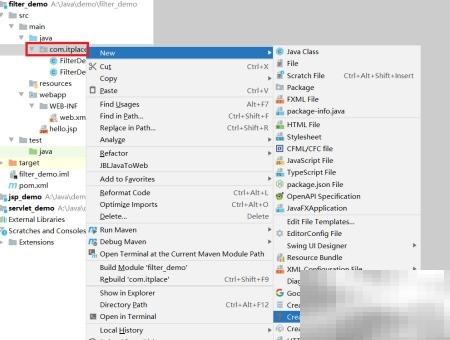 本文将全面讲解Filter文件的创建步骤。1、在项目结构中定位到com.itplace包,右键单击该包,然后依次选择“新建”→“过滤器”。2、在弹出的对话框中为Filter类输入名称,确认无误后点击“确定”。3、Filter文件成功创建后的效果如下图所示。