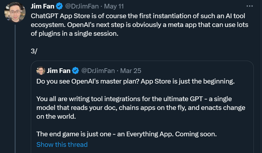 从聊天到编程再到支持各种插件,强大的ChatGPT早就不是一个简单的对话助手,而是朝着AI界的「管理层」不断前进。3月23号,OpenAI宣布ChatGPT开始支持各类第三方插件,比如著名的理工科神器WolframAlpha。借助该神器,原本鸡兔同笼都算不准的ChatGPT一跃成为理工科尖子生。Twitter上许多人评论说,ChatGPT插件的推出看起来有点像2008年iPhoneAppStore的推出。这也意味着AI聊天机器人正在进入一个新的进化阶段——「metaapp」阶段。紧接着,4月初,浙江大学和