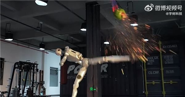 宇树科技于昨日发布了其人形机器人H2的最新实测视频。画面中,公司创始人兼CEO王兴兴在“箭步闪避”环节持续后撤躲避,直观展现了H2踢击动作在响应速度与爆发力方面的显著升级。紧接着,H2在腾空状态下完成高难度回旋踢,一击击碎悬吊西瓜,并顺势踹飞两个各重60公斤的沙袋,落地后仍稳稳保持直立姿态。该片段迅速登上多个社交平台热榜,不少网友留言调侃:“终结者量产版正在加载中……”据官方披露,H2整体身高为180厘米,整机质量约70千克;本轮迭代将本体关节自由度由原先的19个大幅扩展至