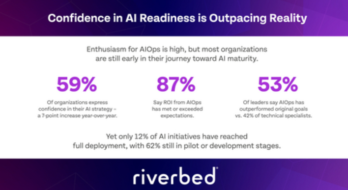 根据Riverbed最新发布的全球调查报告,企业在人工智能(AI)采用方面展现出强烈承诺,并正在对IT运营进行战略性重塑以支撑AI发展。尽管整体AI投资额几乎翻倍,且高达87%的组织表示其AIOps项目的投资回报已达到或超出预期,但仅有12%的AI项目实现了全企业范围的部署。此次调查覆盖来自七个不同国家、多个行业的1,200名商业决策者、IT高管及技术专家,深入揭示了企业在将AI融入IT运维过程中的现状与挑战。研究聚焦五大关键领域:AI采纳进展与成功路径之间