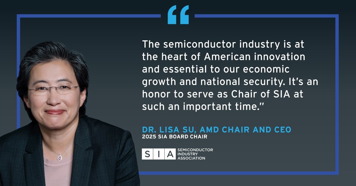 感谢网友刺客的线索投递!11月21日消息,美国半导体行业协会(SIA)于今日发布官方声明,正式宣布AMD董事长兼首席执行官苏姿丰博士当选为该协会新任董事会主席。图源:SIA官方公告注:美国半导体行业协会(SIA)成立于1977年,是代表美国半导体产业的权威性贸易组织与政策倡导机构,致力于维护行业利益,并推动美国在全球半导体领域的领导地位。作为美国半导体行业的核心代表,SIA汇聚了全美几乎全部的半导体企业,其成员贡献了全美行业总收入的99%,同时吸引了近三分之二的非美国籍主要芯片企