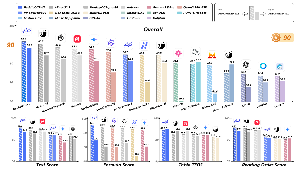 百度正式发布并开源自研多模态文档解析模型PaddleOCR-VL。在全球权威文档解析评测榜单OmniBenchDocV1.5中,PaddleOCR-VL以92.6分取得综合性能全球第一成绩,四大核心能力(文本、表格、公式、阅读顺序