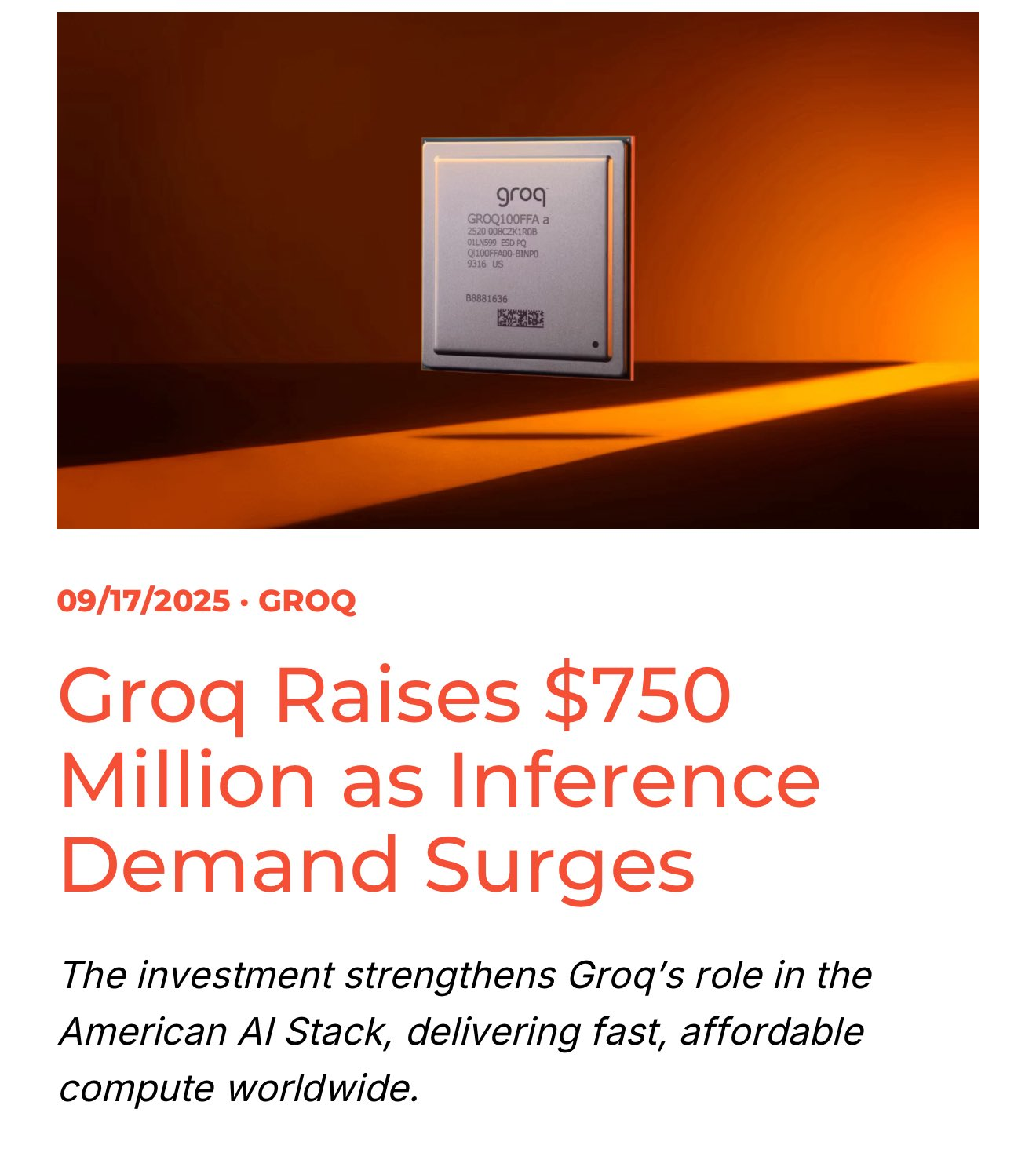 AI推理赛道明星企业Groq宣布成功完成7.5亿美元最新一轮融资,投后估值攀升至69亿美元。本轮融资由Disruptive担任主投方,贝莱德(BlackRock)、纽伯格伯曼(NeubergerBerman)、德国电信资本伙伴(DeutscheTelekomCapitalPartners)以及一家位于美国西海岸的大型共同基金进行了大额参投。同时,三星、思科、D1、Altimeter、1789Capital和Infinitum等现有股东也持续加码。其中,Disruptive对Groq的本轮投入接近