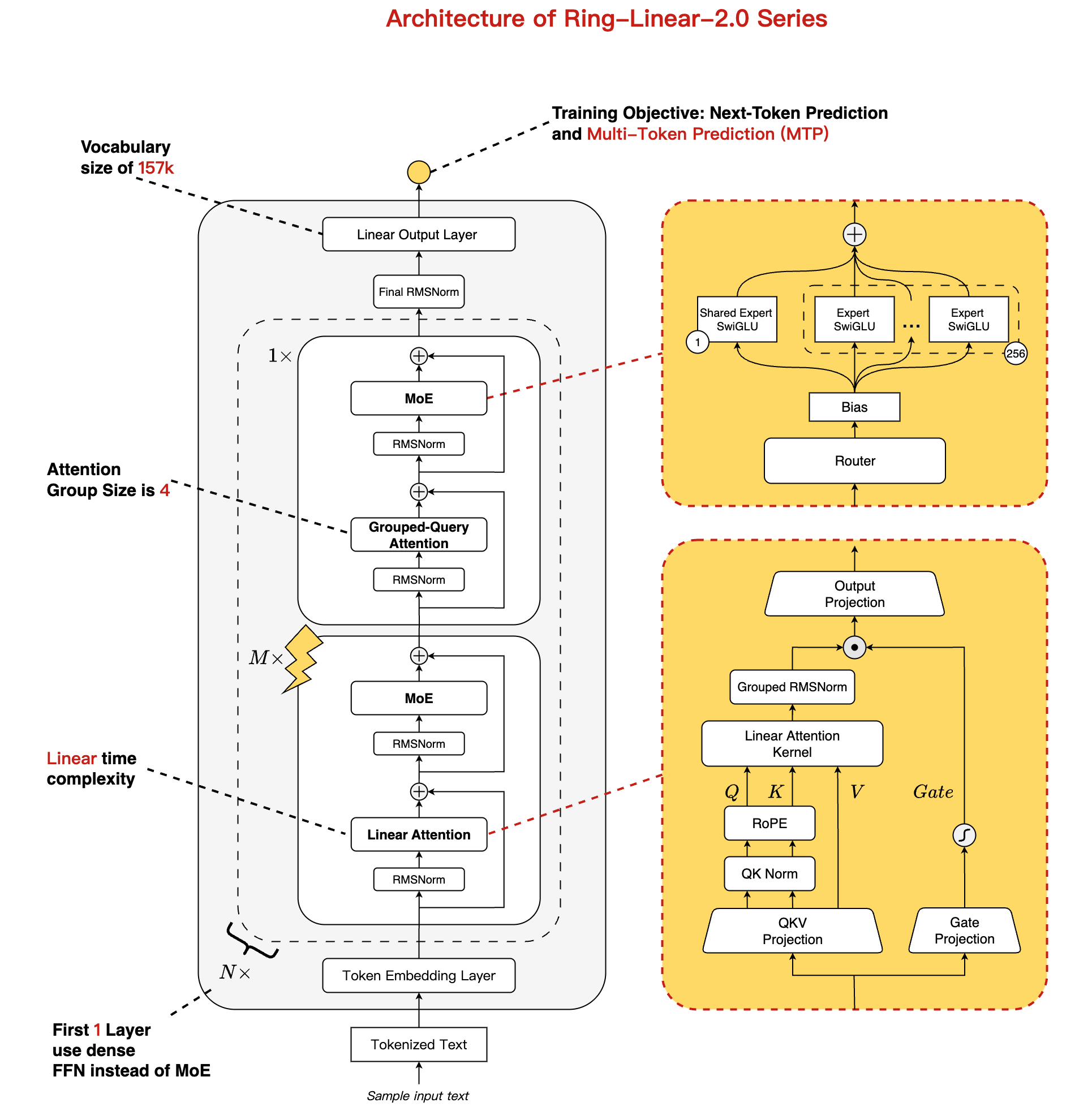 蚂蚁百灵大模型团队近日正式开源了Ring-flash-linear-2.0-128K模型,该模型特别适用于超长文本下的代码生成、编程任务以及智能agent等复杂应用场景。据悉,该模型采用线性注意力与标准注意力机制相结合的混合架构,在保证高效推理的同时实现了卓越的性能表现。通过融合成熟的MoE(MixtureofExperts)设计与多项优化技术——包括1/32的专家激活比率和MTP层结构,Ring-flash-linear能在仅激活6.1B参数的情况下,展现出媲美40B全参
