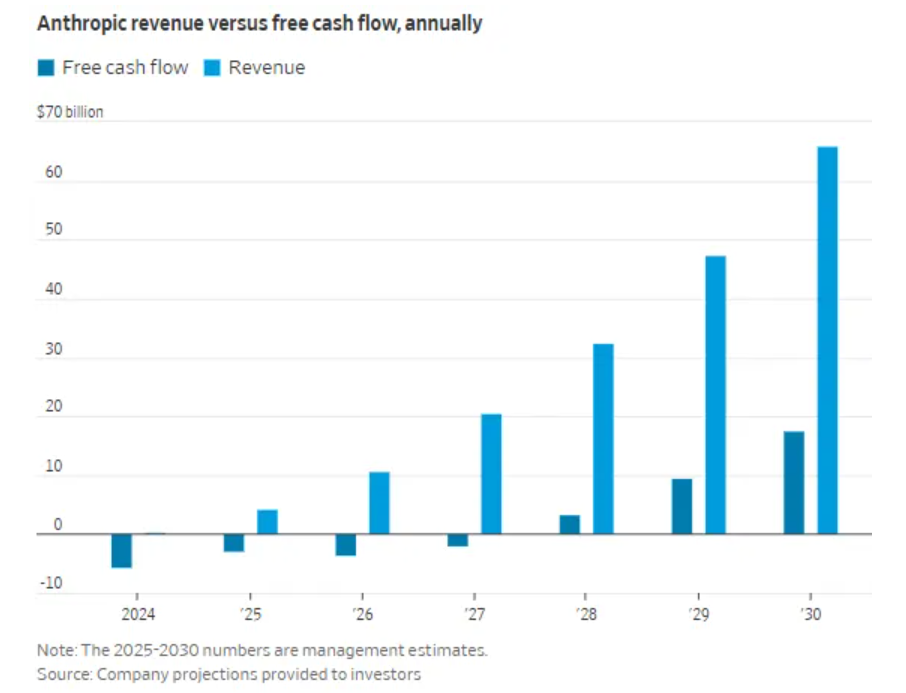 据多家媒体报道,根据最新披露的财务文件,Anthropic有望在2027年实现盈亏平衡,并预计于2028年达成约700亿美元的营收目标,同时产生170亿美元的现金流。与此同时,OpenAI则面临持续扩大的亏损,预计2026年亏损将攀升至140亿美元,直到2029年才有可能扭亏为盈。Anthropic坚持“企业优先”的发展策略,其收入中约80%来源于超过30万家企业的客户群体。公司开发的Claude模型已被Salesforce、微软、德勤和高知特等大型企业广泛应用于金融、医疗及办公自动化等多个行业场景。值得