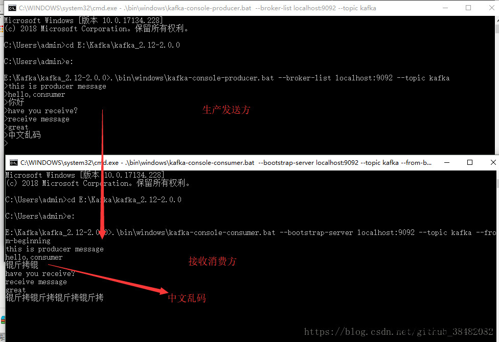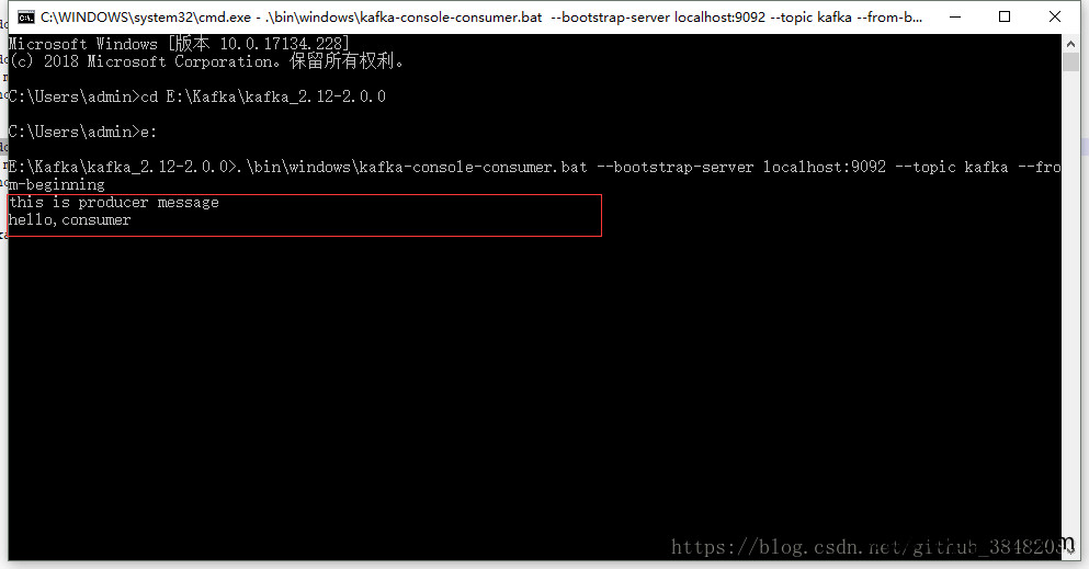 windows使用的是路径E:\Kafka\kafka_2.12-2.0.0\bin\windows下批处理命令,如有问题,参见
